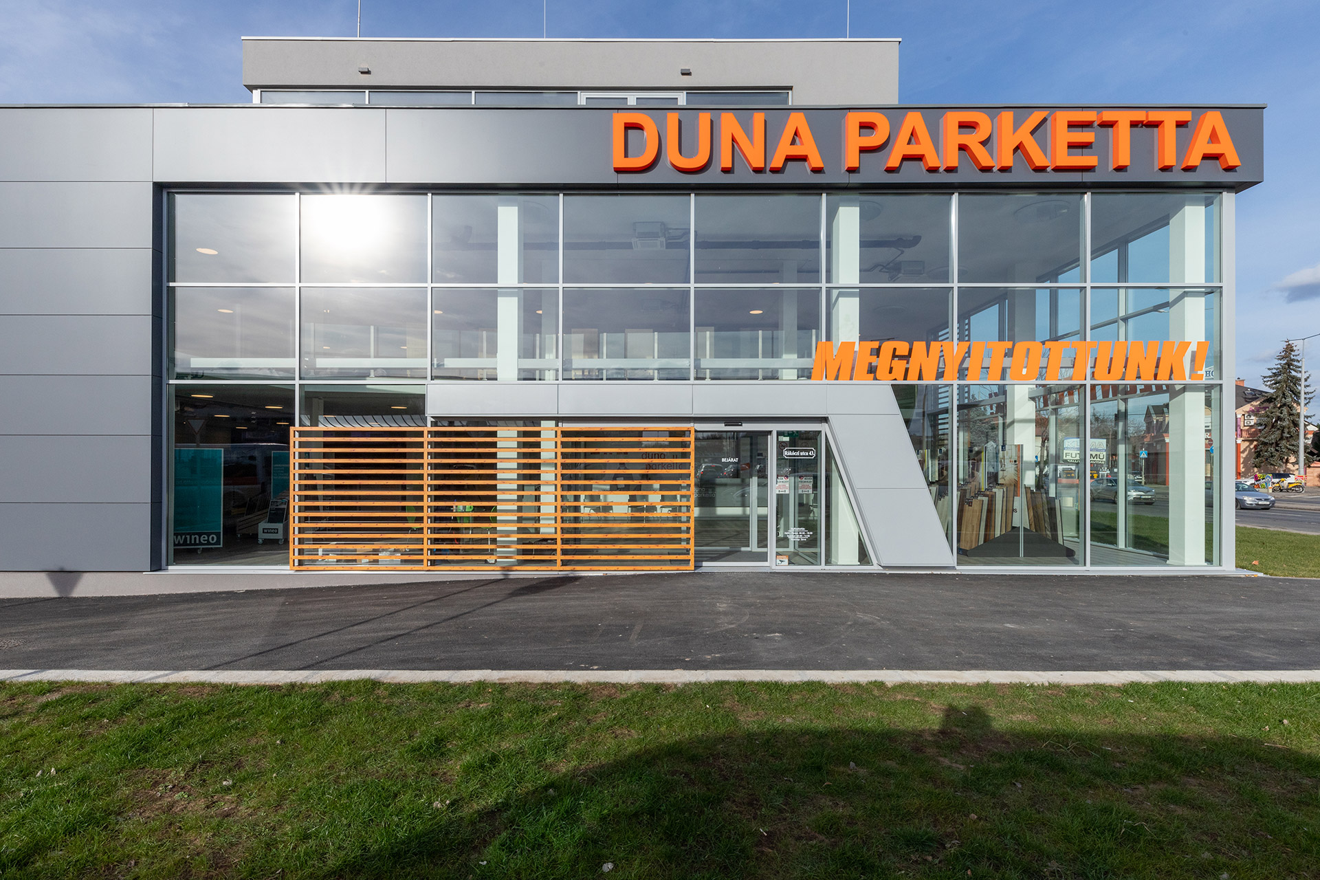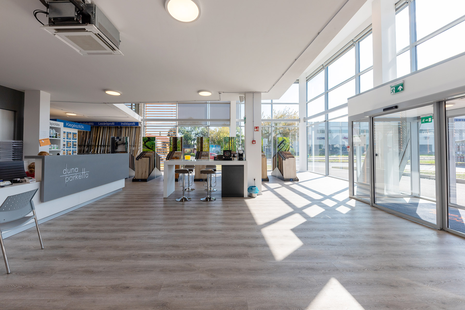 Geze automata tolóajtók gyártása, beépítése a Duna Parketta új üzletében.