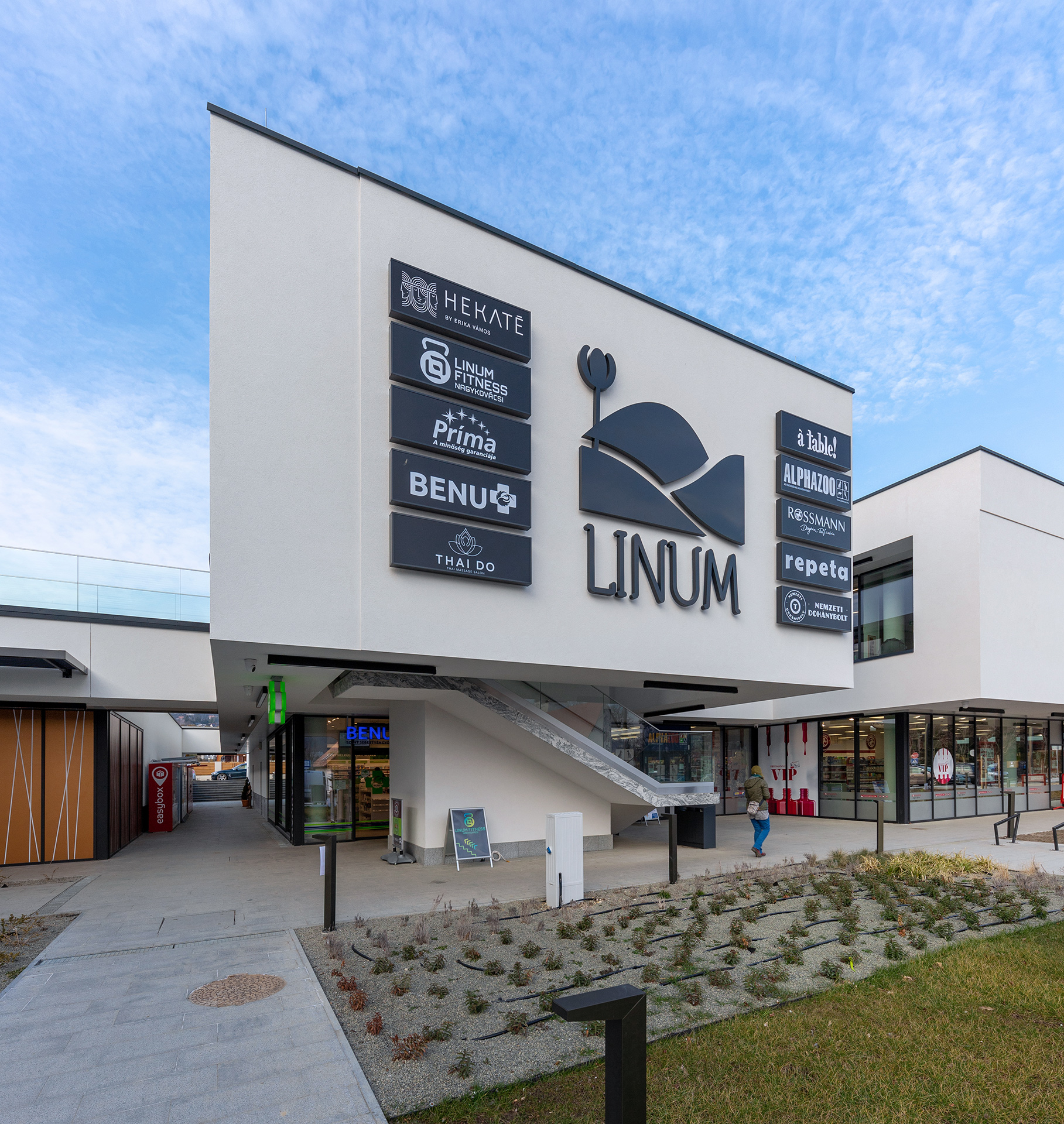 Automatikus működésű tolóajtók és teleszkópos ajtók gyártása és beépítése a Nagykovácsiban található LINUM Udvar bevásárlóközpont számára.